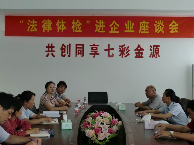 为认真贯彻落实市局《关于开展千家企业“法律体检”专项活动的通知》(温司办〔2011〕40号)文件精神和市司法局2011年“十大工程”的安排, 2011年7月18日,新港所主任李慧玲带领所全体律师和工作人员前往温州金源化工有限公司开展“法律体检”活动。