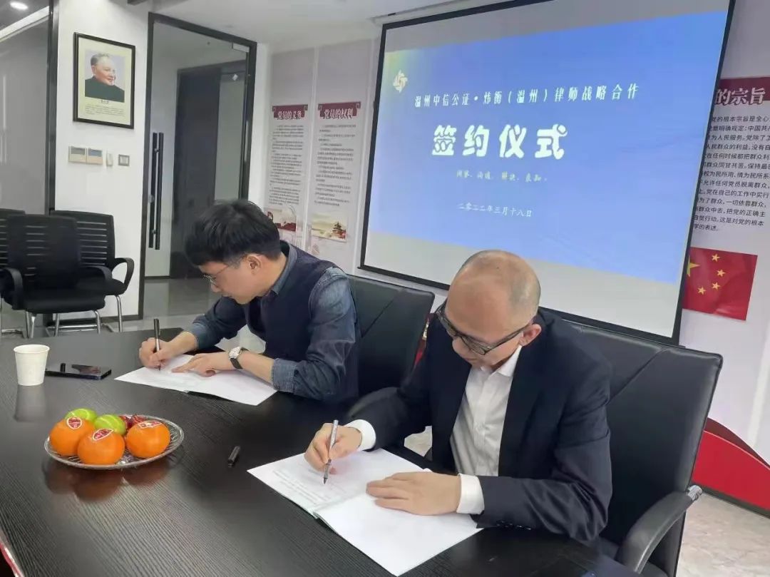 2022年3月18日上午,炜衡(温州)所和温州市中信公证处战略合作签约仪式隆重举行。