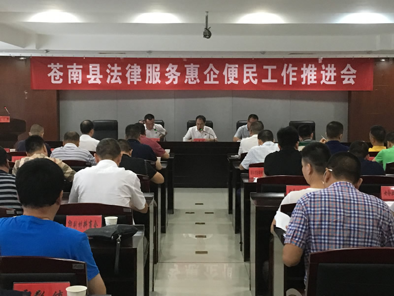 2017年8月25日,苍南县司法局、苍南县工商联联合召开法律服务惠企便民工作推进会议。县公证处主任、全县14家律师事务所和30家商协会代表参加了此次会议。