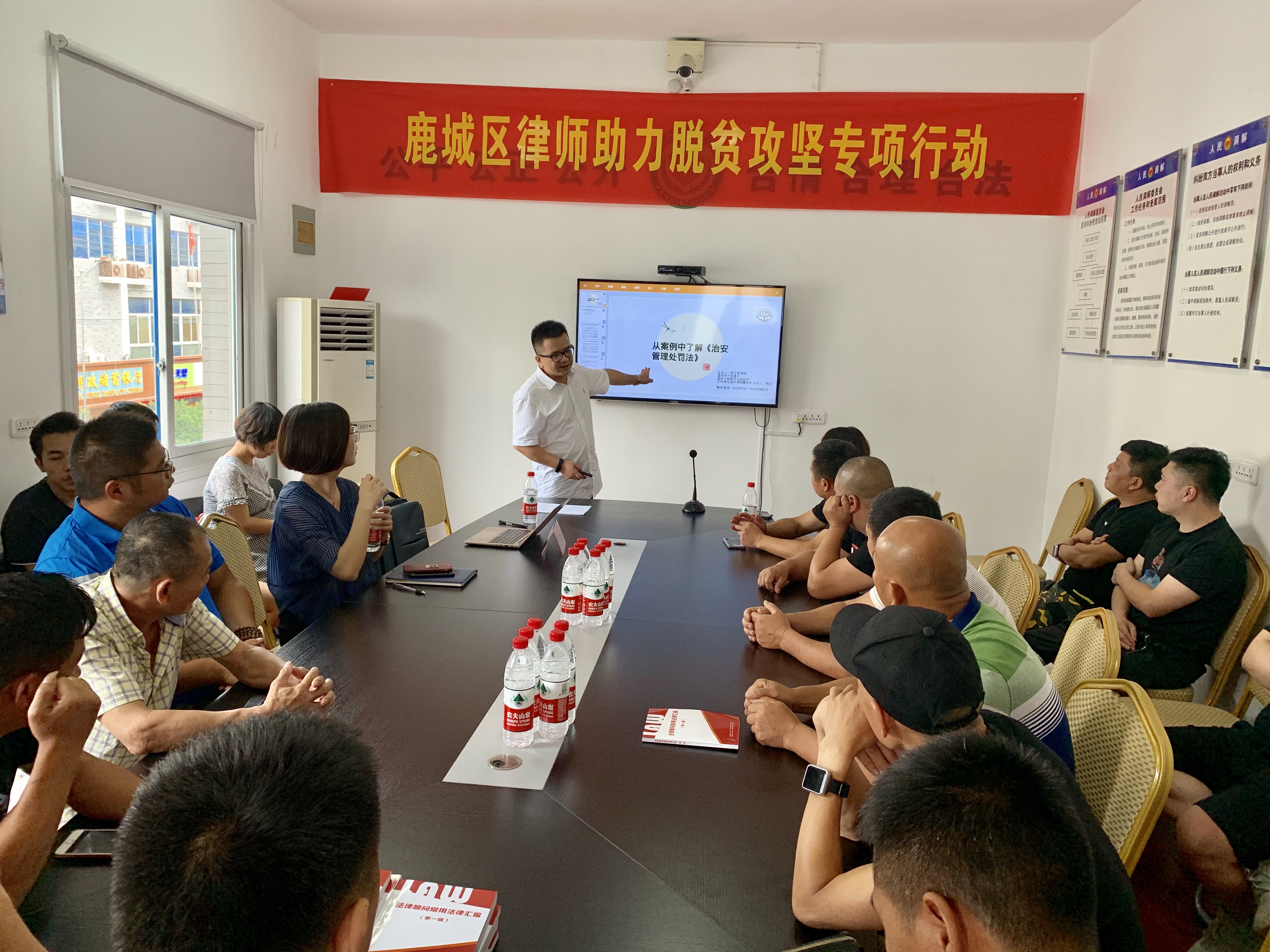 最后,藤桥司法所组织藤桥镇20余名困难户代表参加了法治讲座。鹿城区律师行业党委副书记倪立赶律师为他们送上了《从案例中了解<治安管理处罚法>》专题法律讲座。倪立赶律师由案例切入,深入浅出地分析了人们生活中无意违法治安管理处罚法的行为,让困难户们避免因失误给自己带来不必要的麻烦,起到了良好的法治宣传作用。同时,每一位困难户代表都拿到了律师助力脱贫结对方案,拥有了一位自己的结对律师。