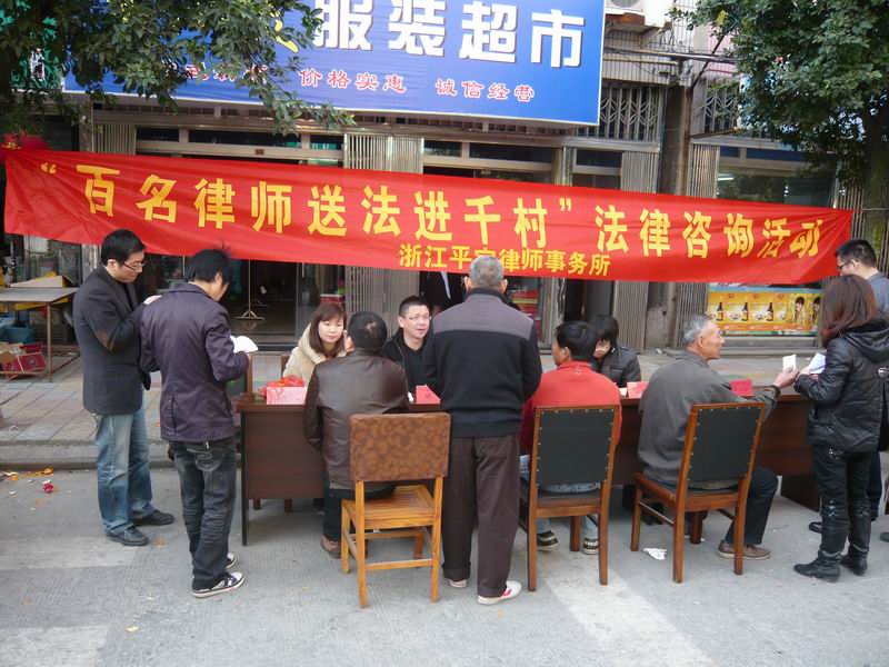 2010年12月9日,平宇所支部组织八位党员律师,由胡钢书记带队,前往瑞安市塘下镇镇东村开展“送法下乡”活动。
