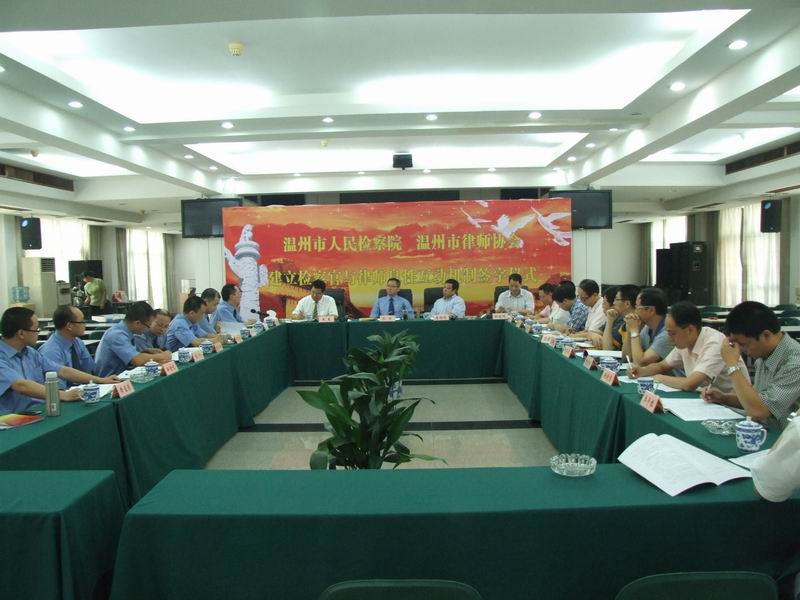7月8日,市检察院与市律师协会举行建立检察官与律师良性互动机制签字仪式,孔璋副检察长和周光会长代表市检察院与市律师协会分别在《关于建立检察官与律师良性互动机制的意见》文本上郑重签字并交换文本。