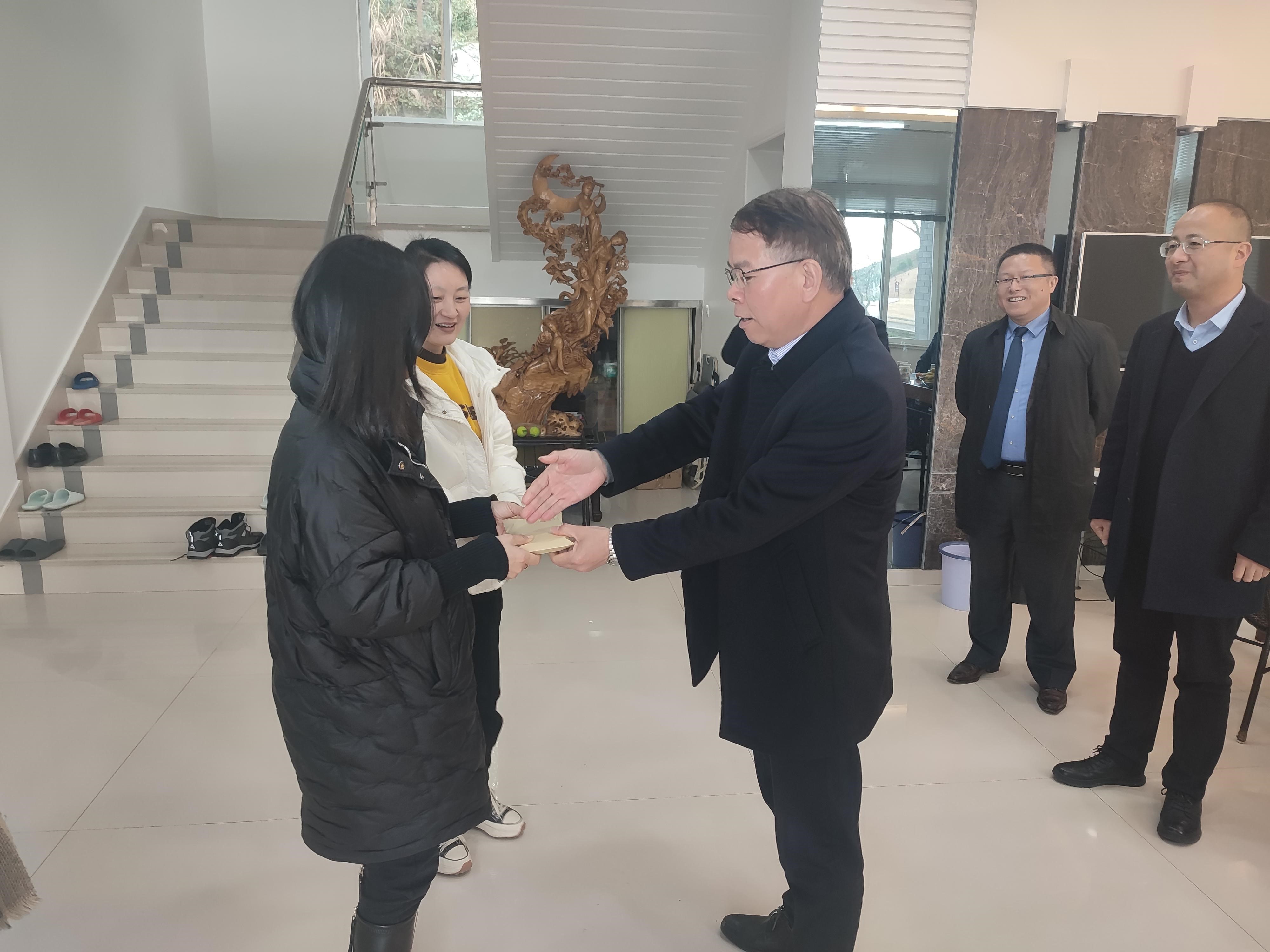 苍南县矾山镇内山村村支委代表困难人员及老党员接收慰问组的慰问及关爱。叶连友会长向村干部详细了解了困难人员及老党员的的生活和健康状况,并祝他们生活美满、新年快乐。