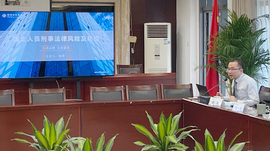 近年来,我国对企业合规问题越来越重视,各地区纷纷开展企业合规第三方监督评估机制专业人员选任工作。为防患于未然,越来越多的企业也积极行动邀请相关领域的专业律师梳理法律风险,助力企业合规经营。2022年5月19日下午,温州德恒法治研究院讲师团杨勇律师应邀为我市大型国企温州市城市基础设施建设投资有限公司党员干部讲授《国企人员刑事法律风险及防控》“以案说法,以案树廉”的讲座。