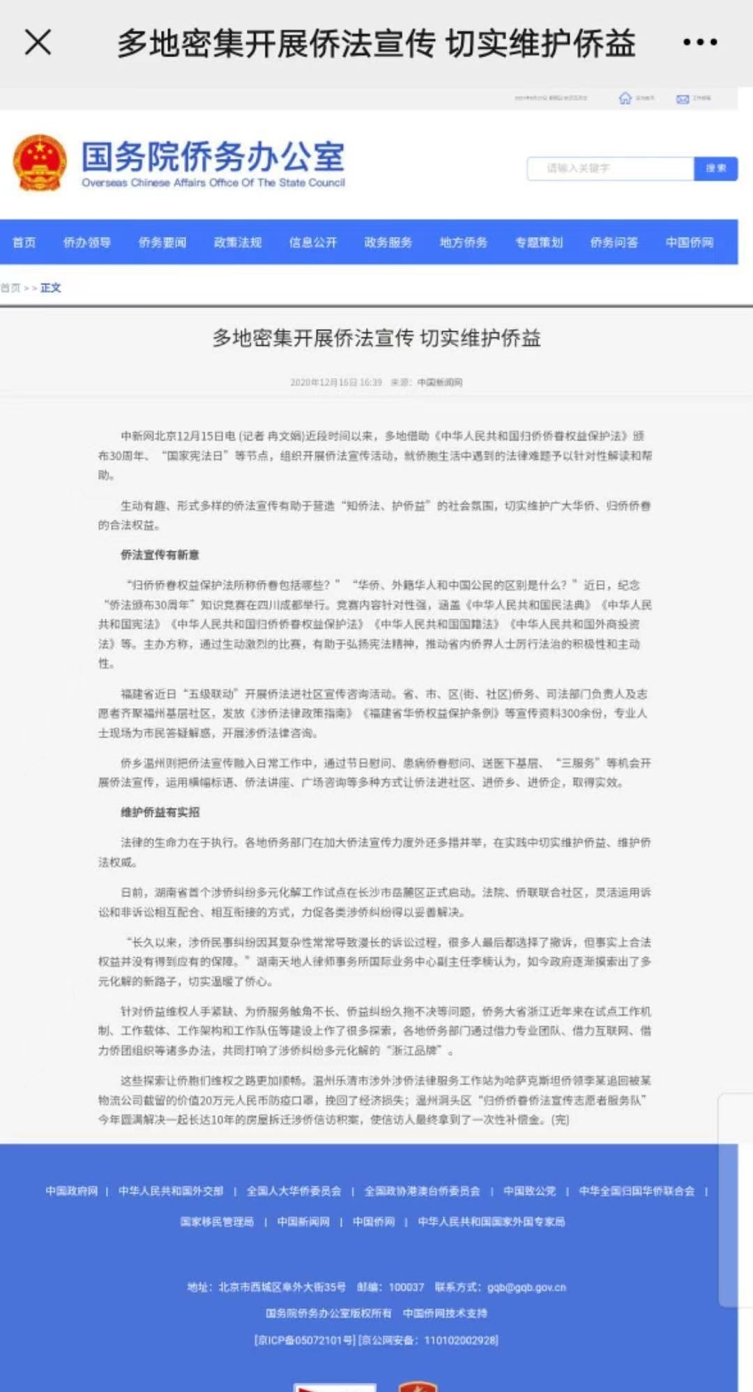 2.2019年,为华侨、侨商、归侨、侨眷提供涉外公益法律服务20件/次;举办《侨法》宣传3场,受培训人数达400人次;举办《侨法法律咨询》1场,接待华侨法律咨询120余人/次。