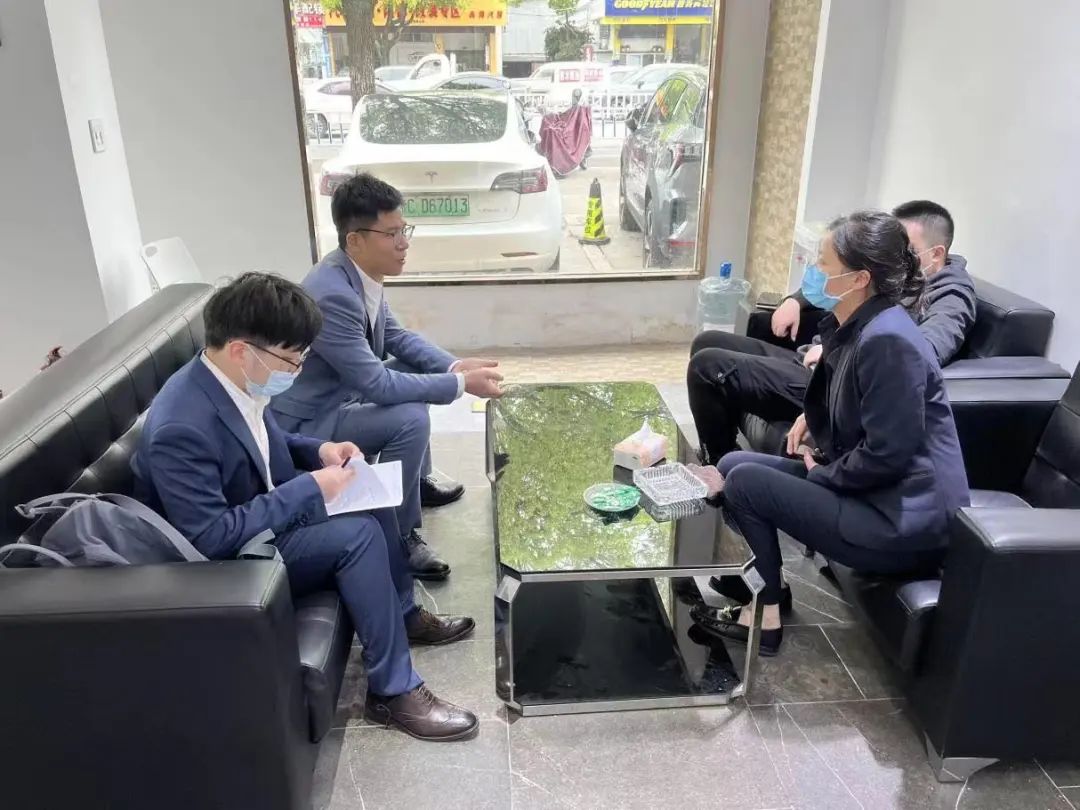 2022年4月1日,嘉瑞成(乐清)所周慧博律师、陈竞等人,走访了乐清市吉跃汽车销售公司、温州市联宝汽车销售公司、乐清市梓昊汽车销售公司、乐清升威新能源汽车公司。