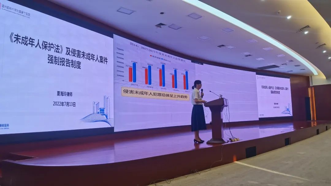 夏律师通过历年数据对比以及案例分析,让大家了解侵害未成年人案件犯罪情况,并强调侵害未成年人案件强制报告制度存在的意义,明确指出医疗机构在接诊、收治的过程中,应当注意哪些方面,才能够更好的实现对未成年人保护。