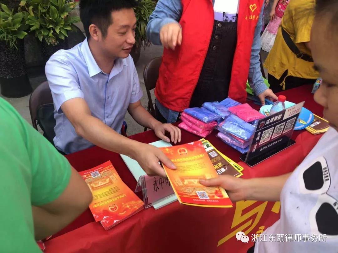 活动现场,东瓯所王靖璨律师通过现场法律咨询、分发法治宣传资料等方式,围绕《宪法》等相关法律法规向过往群众开展深入浅出的解读。同时,还向现场企业员工讲解全面依法治国的重要意义,引导企业员工增强法治意识,号召辖区群众从自身做起,自觉遵法学法守法用法。