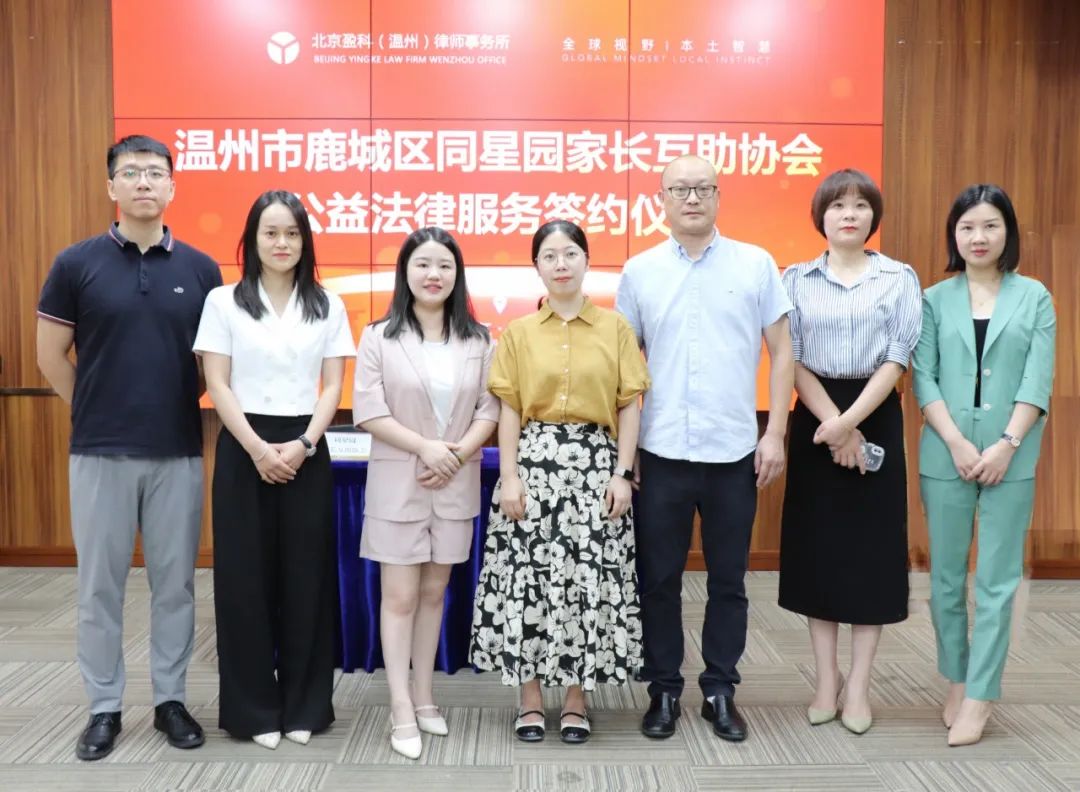 9月7日下午,温州市鹿城区同星园家长互助协会公益法律服务签约仪式在盈科(温州)所举行。盈科(上海)所胡金龙律师、盈科(温州)所执行主任杜丽分别与温州市鹿城区同星园家长互助协会秘书长钟素芳签署公益法律服务合同。盈科(上海)所及盈科(温州)所律师团队将携手为同星园家长互助会提供最贴心最高效专业的法律服务。