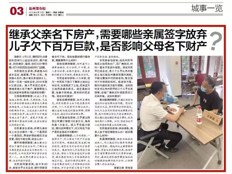 法律服务惠市民 金道(温州)所参与公益法律咨询活动