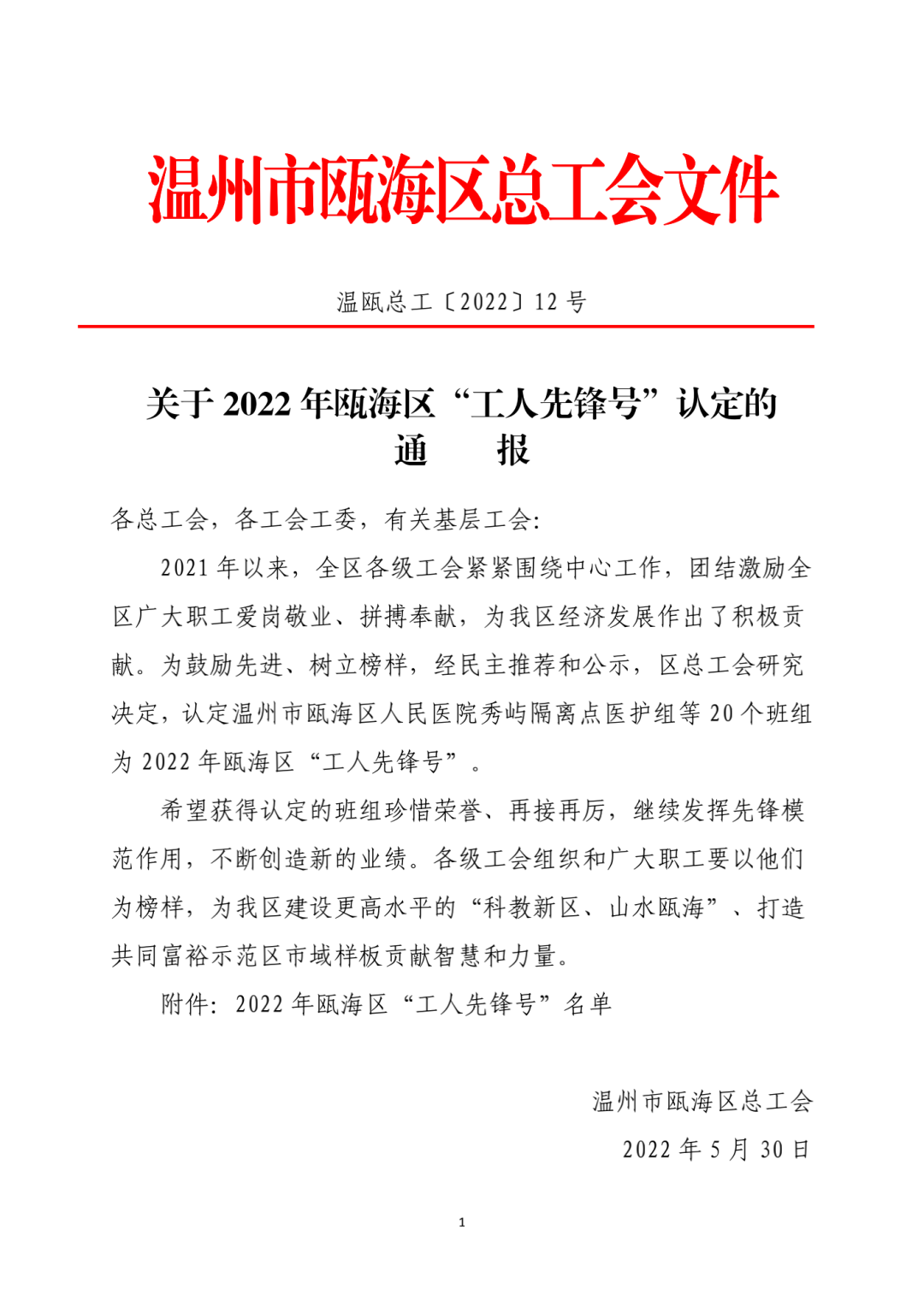 “工人先锋号”是中华全国总工会制定下发的以“创一流工作、一流服务、一流业绩、一流团队”为活动内容的荣誉称号。此项“工人先锋号”荣誉是我所工会自去年底成立以来获评的首个奖项。