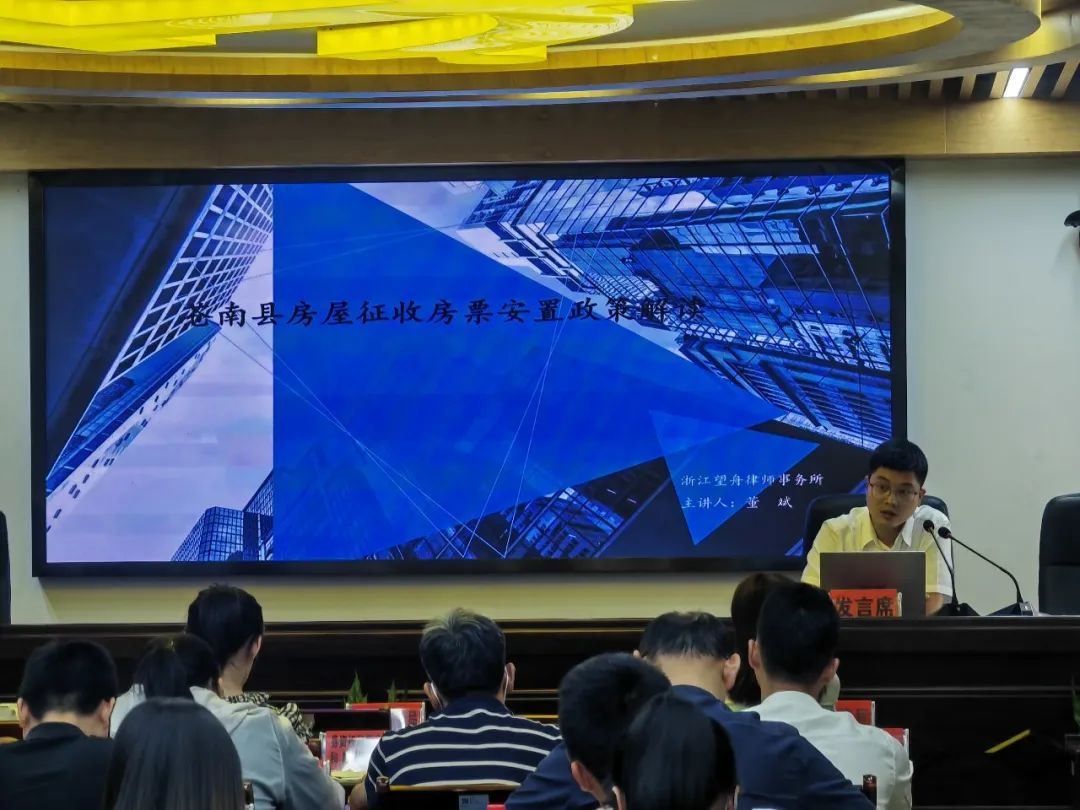望舟所董斌律师为苍泰高速沿线工作人员解读苍南县房屋征收房票安置政策有关规定