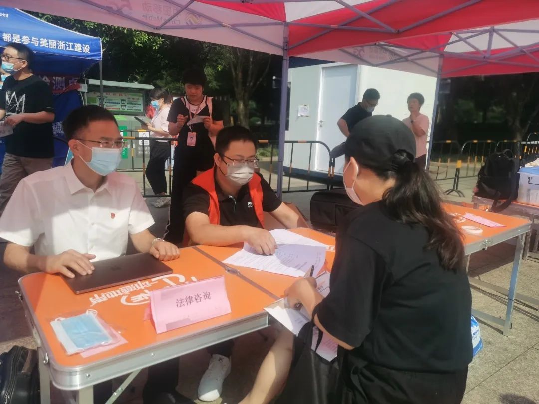 活动现场,律师们认真倾听社区居民的问题,细心分析事情的前因后果,就前来咨询的居民提出的劳动争议、民间借贷纠纷等方面的法律问题提供专业答复,解开了居民心中的一个个疑惑,并为他们讲解与居民权益息息相关的法律法规知识。