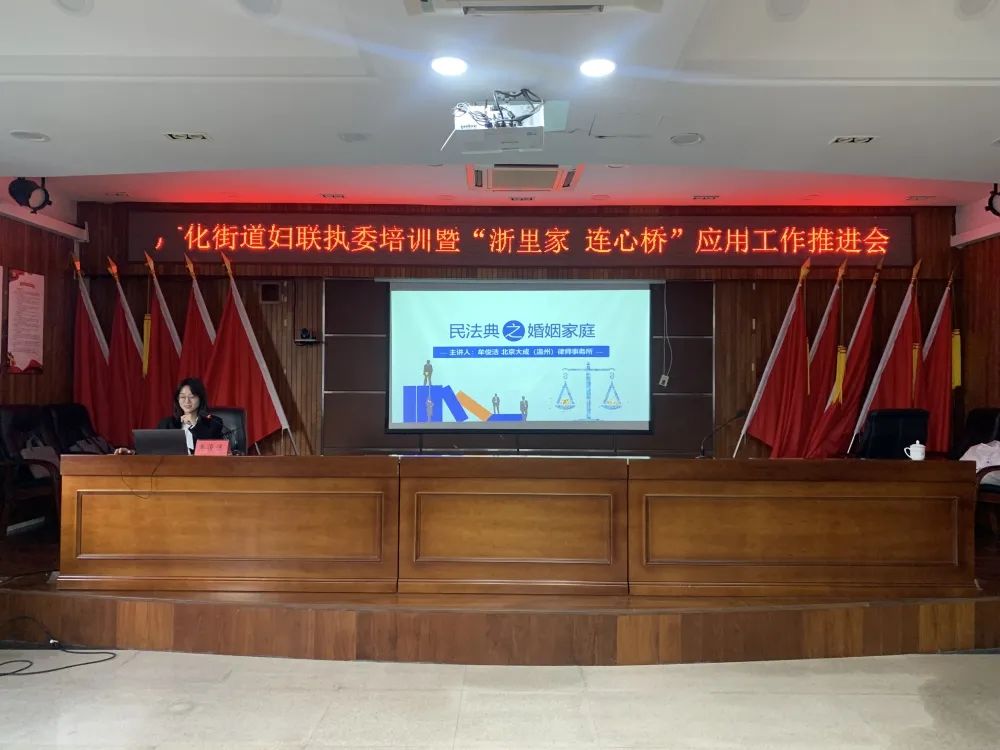 9222327日,北京大成(温州)律师事务所牟俊洁律师受鹿城区妇女联合会邀请分别前往广化街道、大南街道和五马街道,就《民法典》婚姻家庭编内容开展讲座。