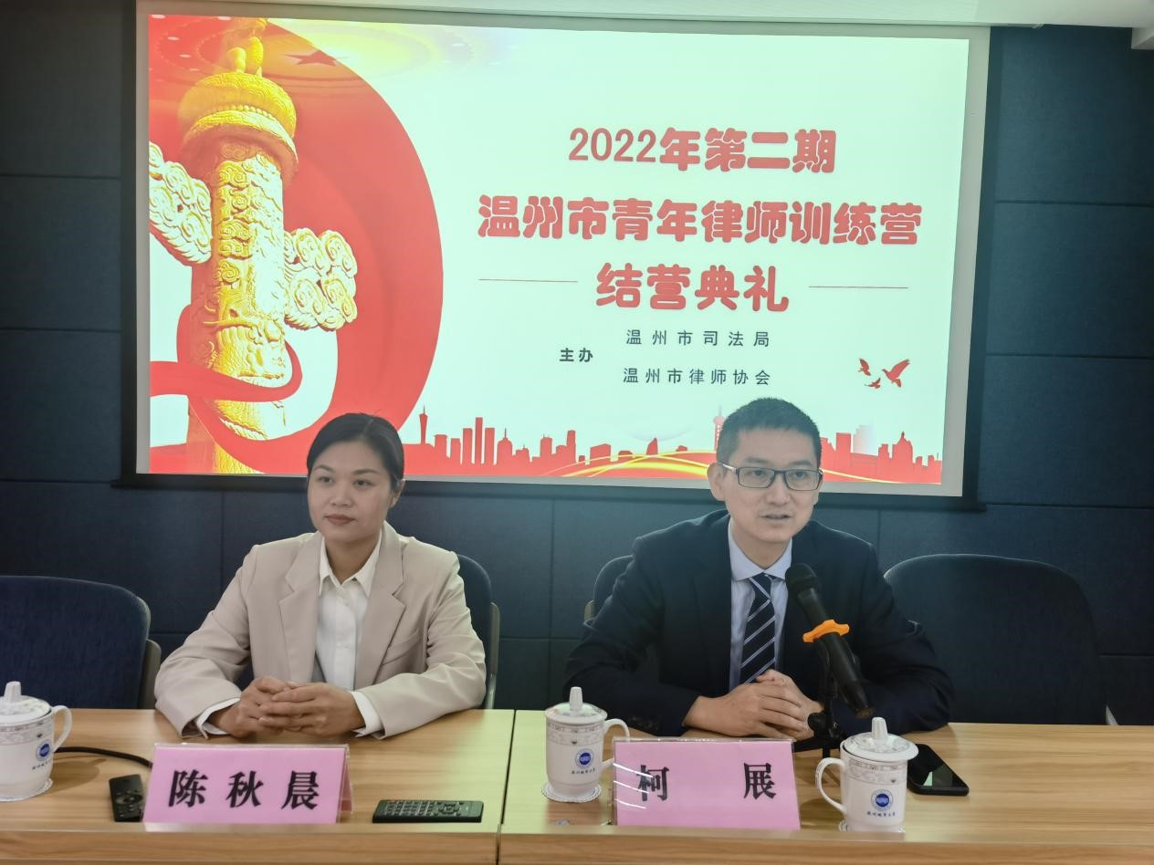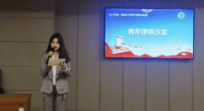 陈先豪介绍了刚刚闭幕的温州市第八次律师代表大会召开情况和近年来温州律师行业发展概况,并寄语青年律师热爱律师职业,珍惜律师荣誉,砥砺初心,心怀人民,树立正确的政治方向和执业志向,恪守律师职业道德和执业纪律,不断提高专业素质和实务技能,不断提高思辨和表达能力,以良好的职业素养服务社会和群众。