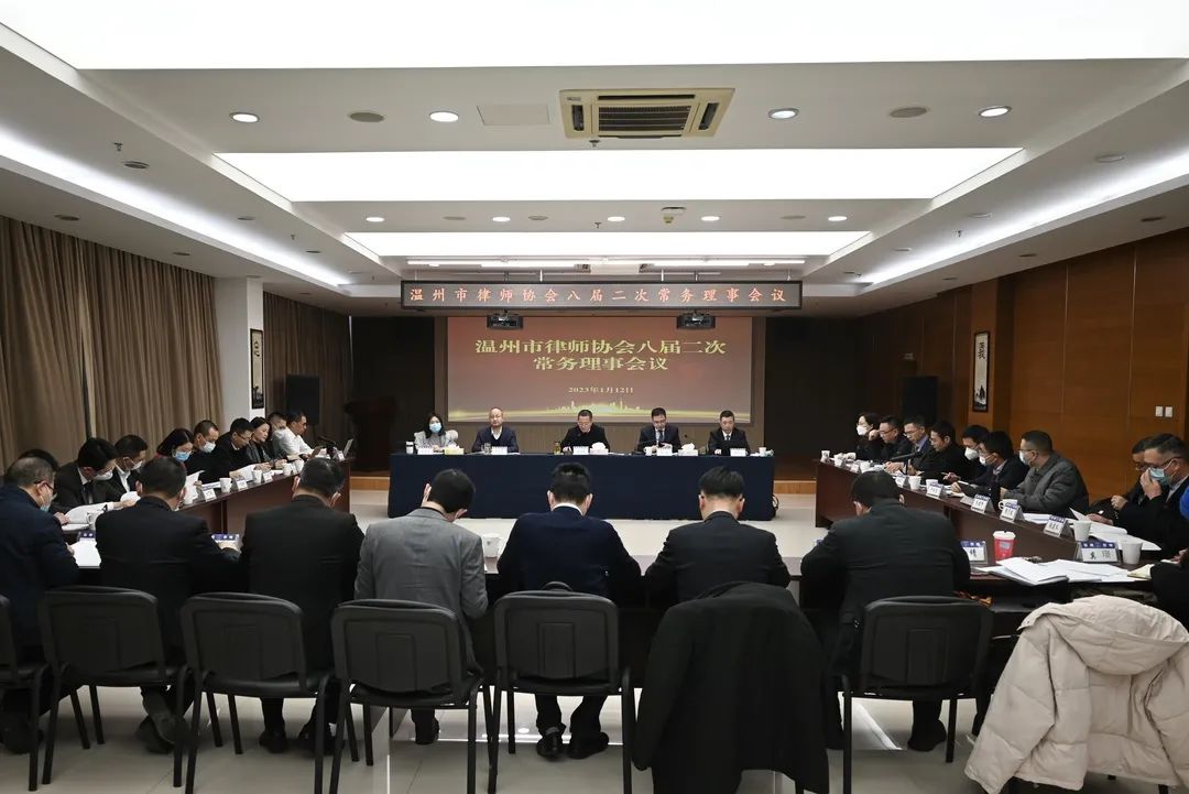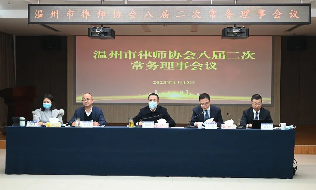 1月13日,温州市律师协会先后召开市律师行业党委、会长联席会议和八届二次常务理事会议,市司法局党委委员、副局长、市律师行业党委书记林向光,市律协会长金疆,市律协监事长杨康乐等领导出席会议。