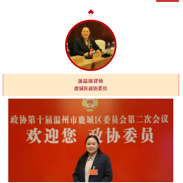 同心同行扛起新使命,奋发奋进展现新作为。2月14日上午,政协第十届温州市鹿城区委员会第二次会议在鹿城文化中心隆重开幕。会上,对文化委员会小组等 23 个先进集体,王向晶等 55 名履职成绩突出委员,25件提案和8个提案承办先进单位予以通报表扬。震瓯所合伙人蒲晶琰律师被评为2022年度鹿城区政协履职成绩突出委员,其提交的《关于分类建立执法标准化流程,为基层治理赋能增效的提案》获得鹿城区政协优秀提案。