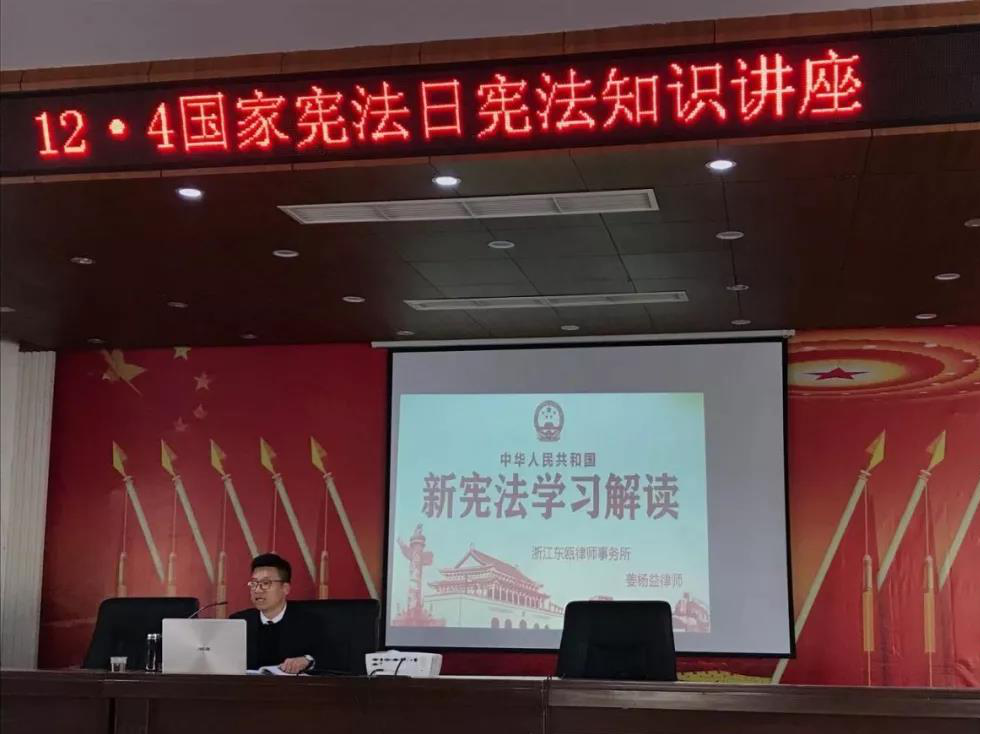 12月4日上午,浙江东瓯律师事务所党员姜杨益律师受永中司法所邀请为辖区内服刑人员宣讲《宪法》课,开展普法宣传活动。