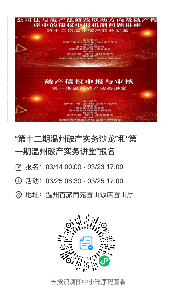 协办单位:温州市破产管理人协会 温州市律师协会