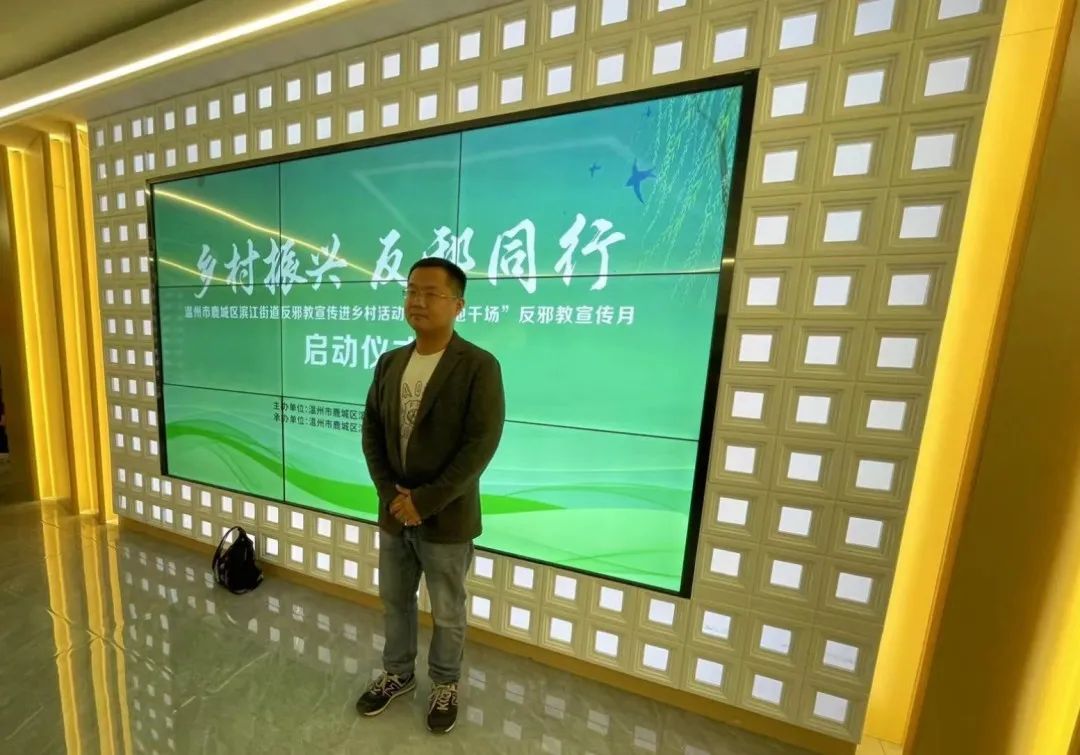 为彻底斩断邪教滋生土壤,提升群众反邪意识,进一步筑牢反邪防线,滨江街道联合洪殿派出所、陡门社区、温州老干部大学(陡门分校)举办了鹿城区“乡村振兴 反邪同行”——暨“百地千场”反邪教宣传月启动仪式活动。4月25日下午,浙江人民联合律师事务所党支部一行在支部纪检委员姜程同志的带领下,参加了在上陡门公园旁的陡门社区党群服务中心举办的此次活动,并为现场200余位居民开展了一次深刻的反邪教主题教育。