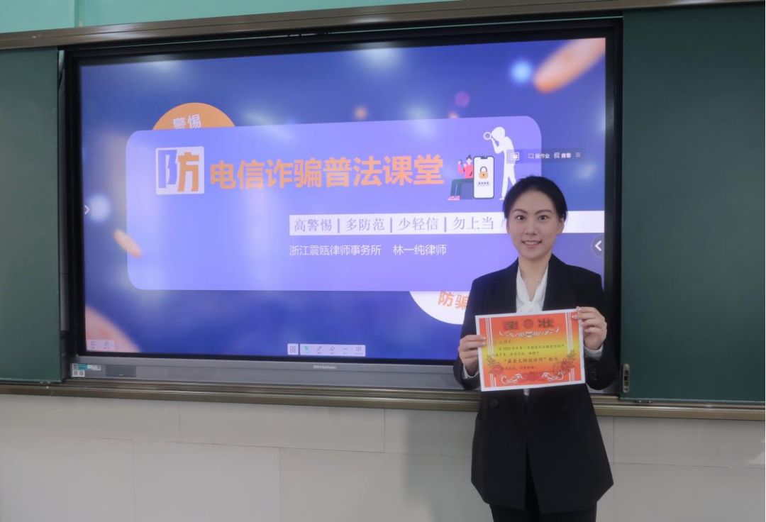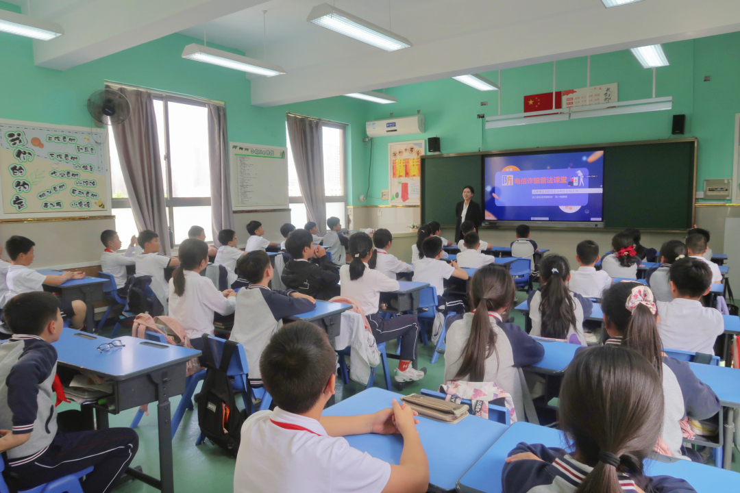 5月8日,我所法顾中心林一纯律师受邀为温州市中通实验学校小学部五(7)班的全体同学开展《防电信诈骗普法课堂》活动。