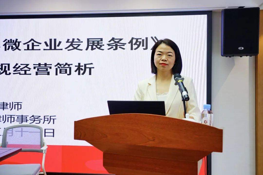 最后,由浙江嘉瑞成律师事务高级合伙人廖玲娟律师具体解读了《浙江省促进中小微企业发展条例》和《浙江省民营企业发展促进条例》。两个条例规定了政府各有关部门在创业扶持、创新推动、市场开拓、财税支持、融资促进、服务措施、权益保护、监督检查等方面的具体规定,为进一步优化中小微企业发展环境、保障中小微企业公平参与市场竞争、维护中小微企业合法权益、支持中小微企业创业创新、促进中小微企业健康发展、发挥中小微企业在高质量发展建设共同富裕示范区中的重要作用提供政策法规支持。