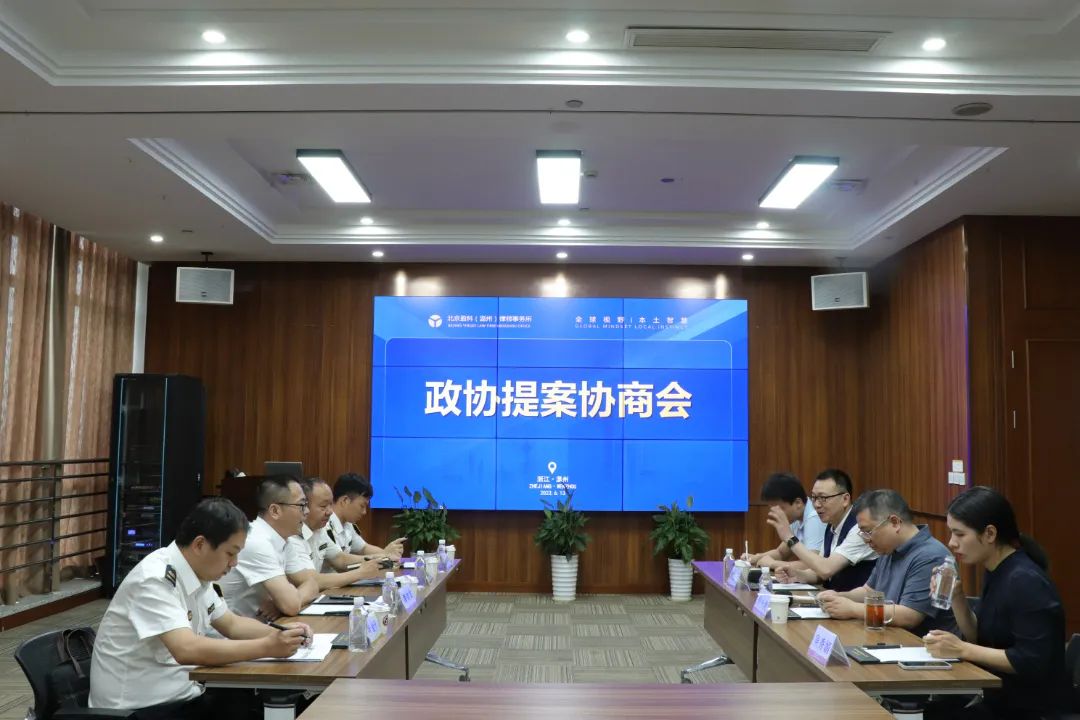 2023年6月13日上午,温州市劳动保障管理中心主任潘剑龙、温州市劳动保障管理中心副主任杜有乾、执法科科长叶金升、科员谢修才就詹小虎委员在市政协十二届一次会议期间所提的《关于保障休息权,夯实共同富裕基础的提案》进行答复,并在盈科温州律所多功能会议室进行座谈。