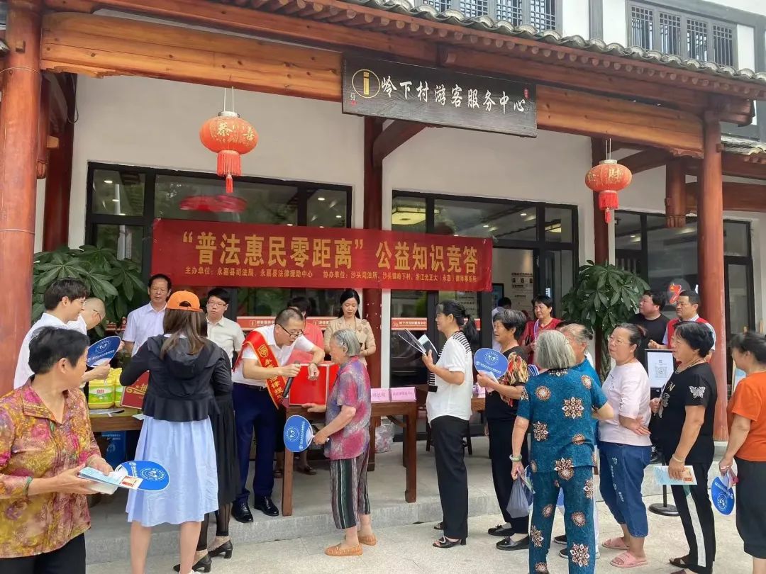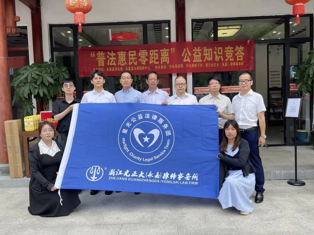 2023年6月13日,由永嘉县司法局和永嘉县法律援助中心主办,永嘉县沙头司法所、沙头镇岭下村村民委员会和浙江光正大(永嘉)律师事务所共同承办的“普法惠民零距离”公益知识竞答活动在永嘉县沙头镇岭下村顺利举行。浙江光正大(永嘉)律师事务所律师在现场开展法律知识有奖竞答活动,并为村民提供公益法律咨询服务,村民积极有序排队参与活动,进行咨询。沙头镇司法所所长卢佩成和岭下村党支部书记郑希微也来到活动现场,对本次活动表示了高度的认可,并鼓励星光公益团队能够在永嘉开展更多公益普法活动。