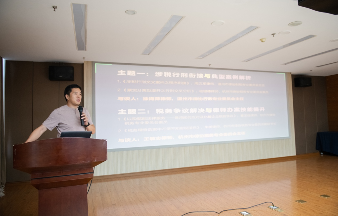 2023年6月11日下午,由温州市律协财税专业委员会承办、杭州市律协税务专业委员会支持协办的“涉税行政争议及行刑交叉与衔接”研讨活动在温州市司法局八楼会议室开展。杭州市律协税务专业委主任王敏志律师带领朱明、杨银德、曹玉佳等律师参与研讨。本次采用线下+线上相结合的方式,温州律师线下参与人数80余人,杭州律师线上参与人数50余人。