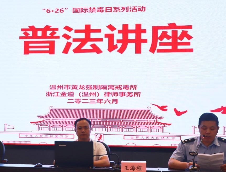 在第36个“6·26”国际禁毒日来临之际 ,浙江金道(温州)律师事务所王海程律师团队受黄龙戒毒所邀请,向戒毒人员开展“家事家庭”普法讲座和法律咨询活动。