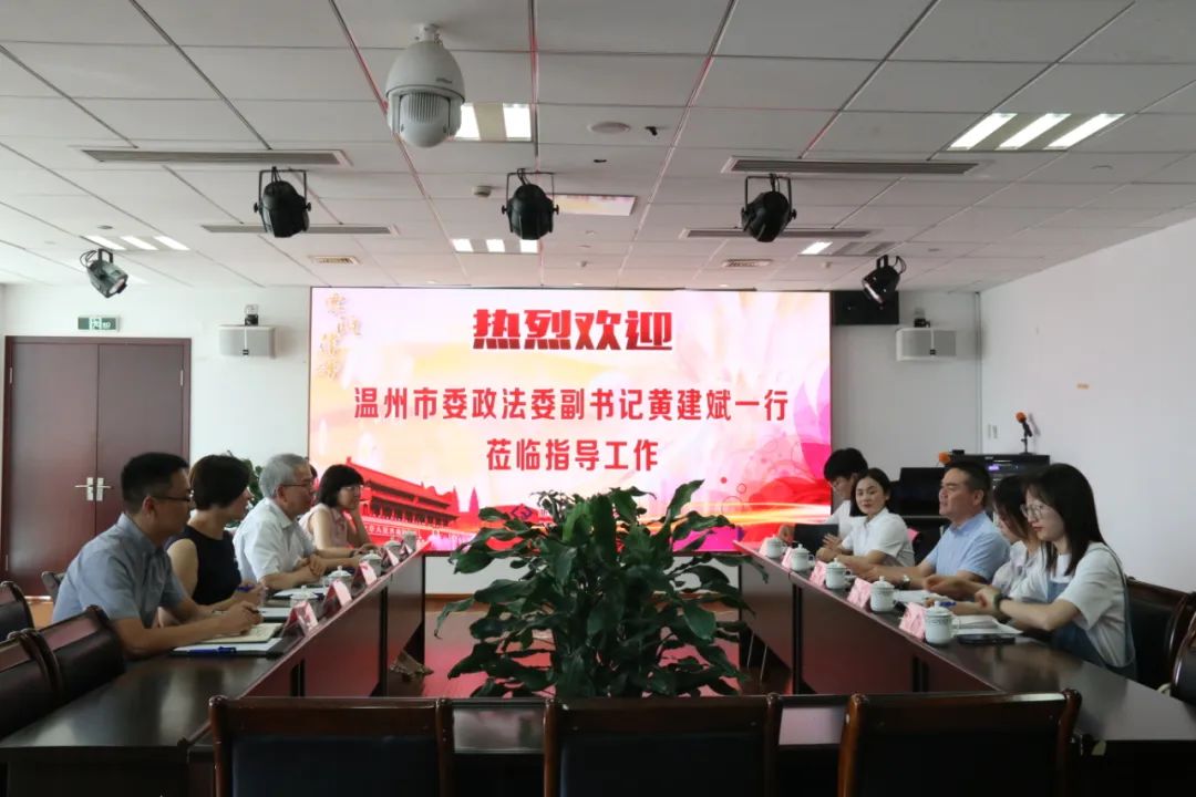 黄建斌副书记一行在叶连友主任等人的陪同下参观了我所文化墙,了解了我所的发展概况、人员信息、党建情况,并在我所大会议室召开商谈会。叶连友律师对黄副书记一行的到来表示热烈欢迎,并感谢市委政法委员会、温州市中院各位领导对律师代表所提建议的重视和支持。