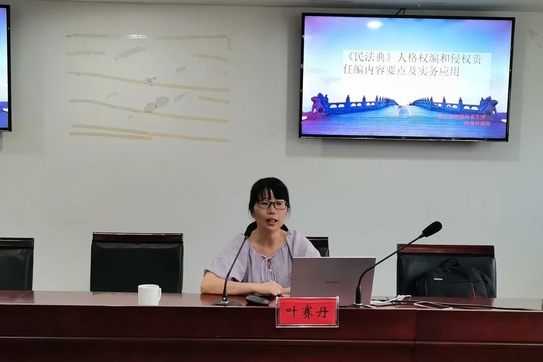 叶赛丹律师开展《民法典》普法宣讲,围绕人格权编和侵权责任编内容要点及实务应用,给现场的社区民众深入浅出地介绍了《民法典》人格权的基本概述,从合理利用权益到具体侵权责任,运用实践案例让群众对人格权、侵权责任有了初步认知并引起探讨。