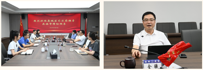 叶俊杰局长一行分别走访了震瓯、聚祺、人民联合、浩天等入驻法务区的律师事务所,听取律所党建工作及业务情况汇报,对各律师事务所积极参与法治温州建设和服务社会经济发展表示充分肯定。