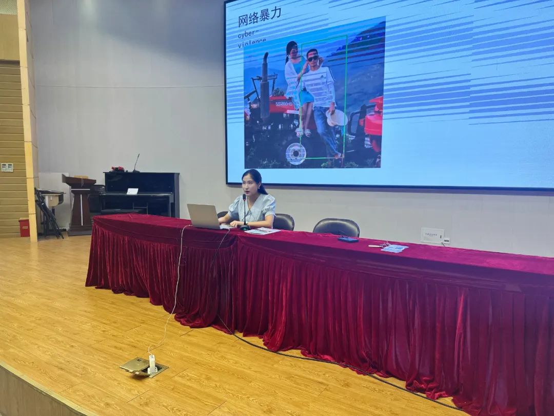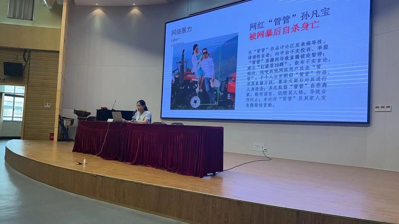 胡东晓律师首先以“网络暴力”为切入点,深入浅出地为现场的同学们分别介绍了网络暴力的定义、表现形式,以及侵犯的具体权益。并结合典型案例,为同学们讲解了网暴者需要承担的法律后果。同时,告知同学们,处于后真相时代,在面对网络暴力信息时,需要理性思考、保持怀疑、深度思考,在遭受网络暴力后,更需要以法律武器维护自身的合法权益。