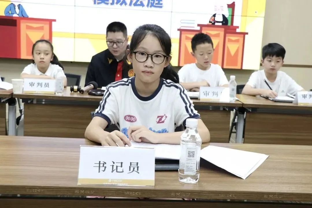 模拟法庭围绕一起校园纠纷案件展开。“小演员”们身着律师袍,迅速进入状态、各司其职,分别饰演“审判员”“书记员”“原告律师”“被告律师”“被告”“原告”等角色,特邀盈科温州律所监事会副主任王平饰演主审法官。