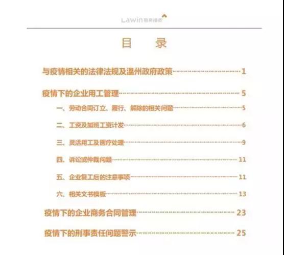 浙江联英律师所组建“联英战疫团队”,梳理与疫情相关的法律法规及温州政府政策、疫情下的企业用工管理、企业商务合同管理、刑事责任问题警示等内容模块,定制了《企业应对疫情法律指引手册》,并在该所微信公众号无偿共享。