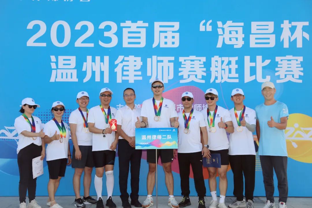 为迎接亚运盛会,弘扬亚运精神,2023年9月10日,温州市律师协会在瓯江口新区瓯锦河畔举办“海昌杯”温州律师赛艇比赛。本次赛事是之前律师赛艇公益课的延续,分为陆上划船机2000米接力赛和水上八人单桨500米竞速赛。全市共40名律师、实习律师和律所工作人员组成五支参赛队伍,其中大部分为本次赛艇公益课的学员。
