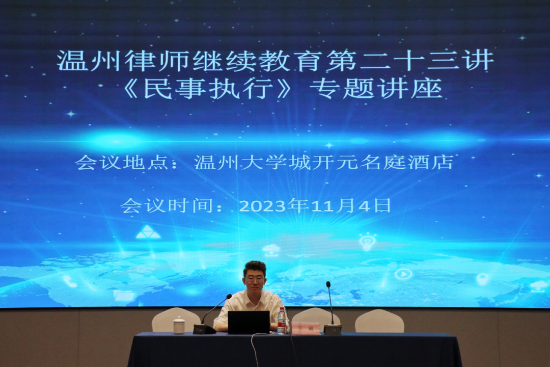 为提升温州律师民事执行领域理论水平,强化民事执行案件实践能力,2023年11月4日,由温州市律师协会民事执行专业委员会、民诉法专业委员会联合举办的《民事执行》专题讲座在温州大学城开元名庭酒店顺利召开。