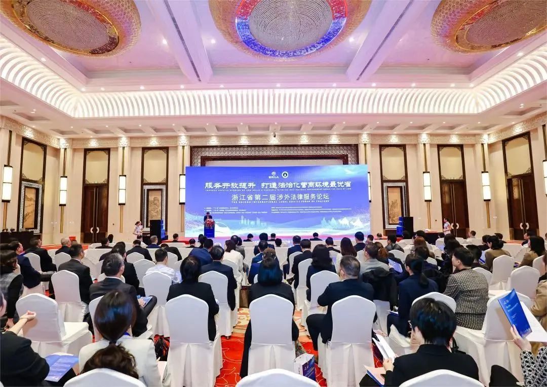 为深入学习贯彻习近平法治思想,统筹推进国内法治和涉外法治,2023年11月10日上午,由“一带一路”律师联盟杭州中心、浙江省律师协会主办,“一带一路”律师联盟、浙江省发展和改革委员会、浙江省司法厅支持,以“服务开放提升,打造法治化营商环境最优省”为主题的浙江省第二届涉外法律服务论坛在杭州举办。