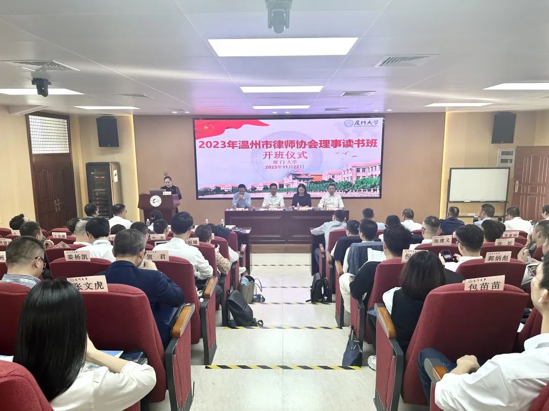 2023年11月22日-26日,温州市律师协会理事读书班在厦门大学成功举办。市司法局党委委员、副局长、市律师行业党委书记林向光,市律师协会会长金疆,监事长杨康乐,厦门大学外文学院副院长辛志英等领导出席开班仪式。市律师行业党委委员、市律协八届理事会理事、一届监事会监事、我市各县(市、区)联络组负责人以及部分受表彰律师共80人参加培训。