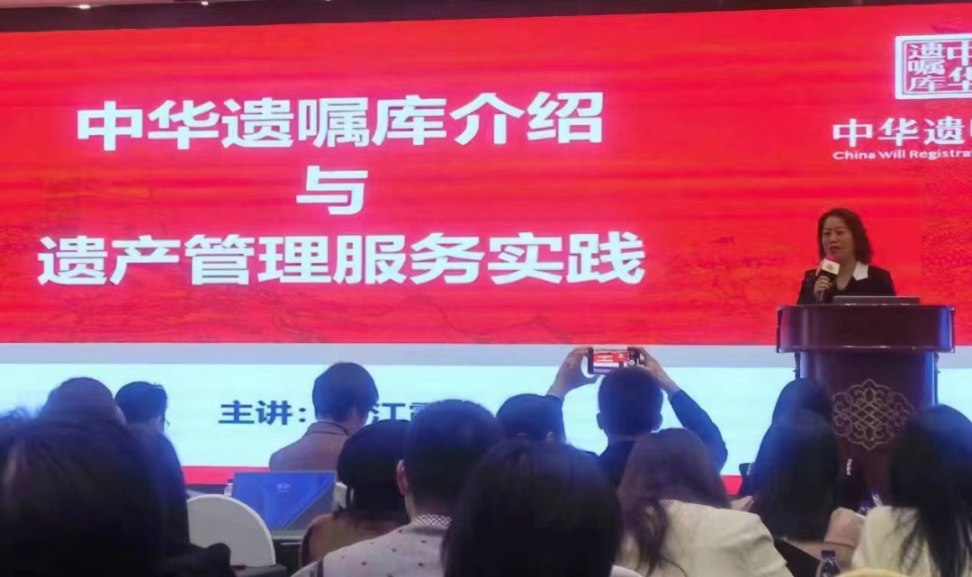 中华遗嘱库温州区域负责人周江霞女士作《中华遗嘱库及遗产管理实践分享》。在陈凯博士对制度讲解的基础上,结合温州实际,从遗嘱登记流程、遗产管理服务市场前景等方面进行分享。