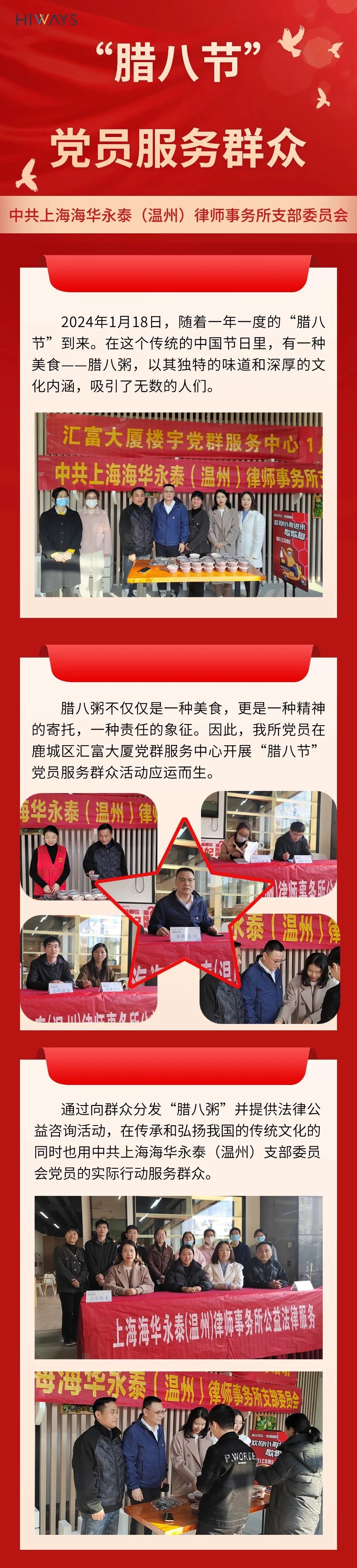 海华永泰温州分所开展“腊八节”党员服务群众活动