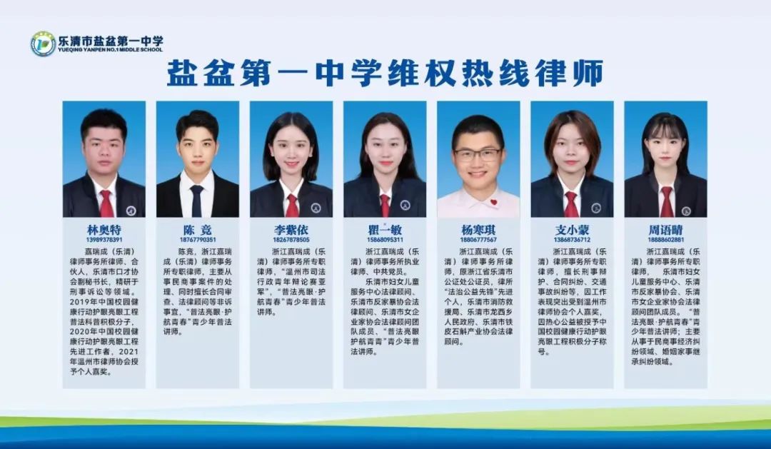 设立律师校园维权热线是我所与乐清市盐盘第一中学签订合作的一项创新举措,旨在提高学生法律意识,维护学生合法权益,促进校园内的和谐稳定。