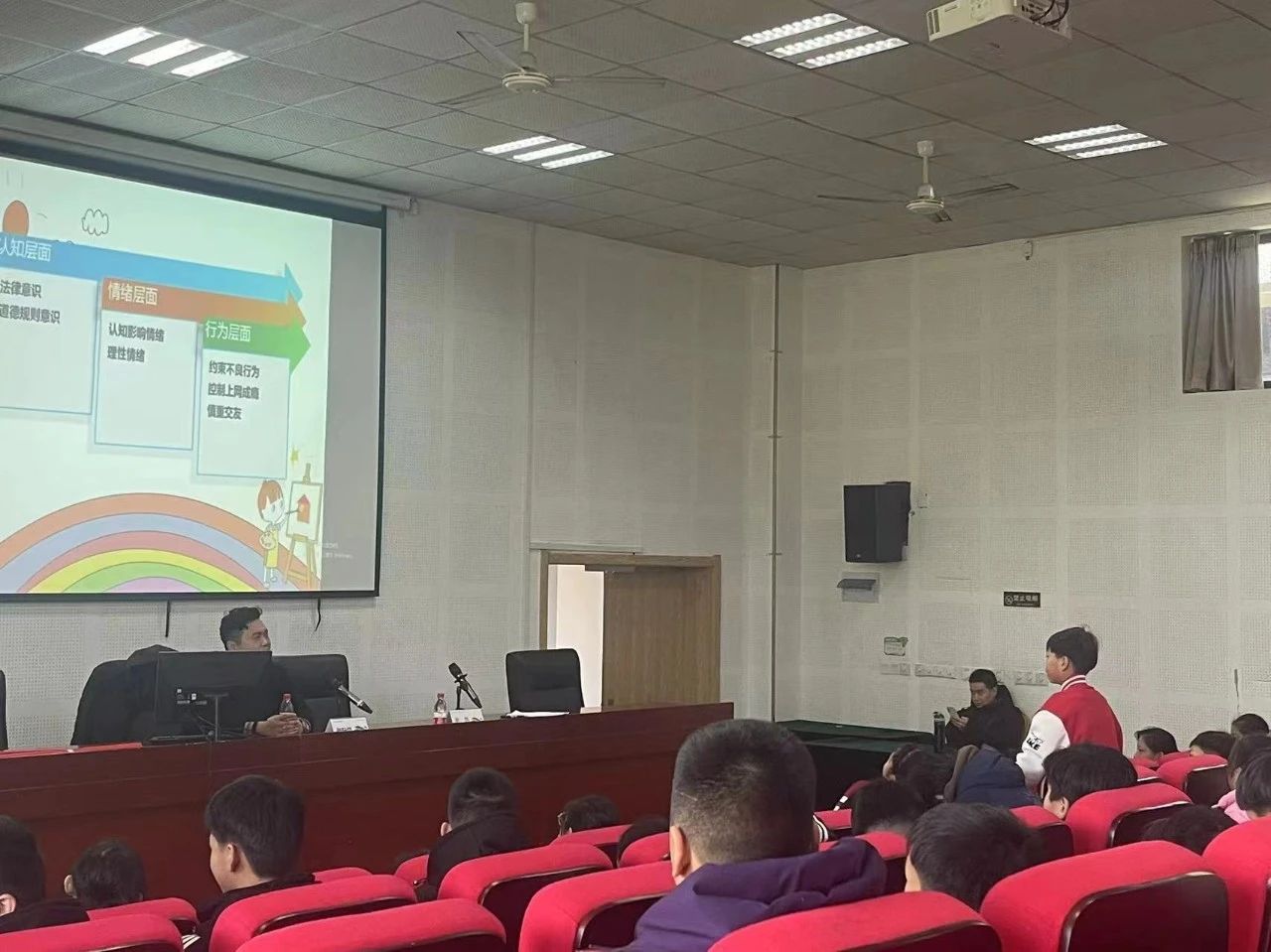 讲座中,张轩恺律师以案释法,结合鲜活的案例,深入浅出地讲解了青少年犯罪的表现形式、危害及应对方法。随后,通过趣味问答的方式,将法律知识融入到与孩子们的互动中。现场引导孩子们学会思考和判断“如果看到同学被欺凌,我们应该怎么做?”“在网络上发布不实信息会有什么后果?”“如何与同学之间融洽相处?”为广大学子送上了一份宝贵的法治教育大餐。