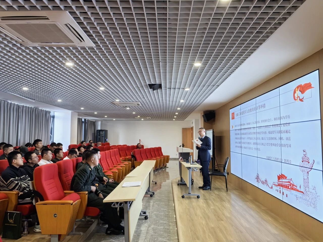 讲座中,张文虎律师对《退役军人保障法》进行了全面细致的解读,包括退役军人的权益保障、就业创业支持、优待抚恤等方面。同时,还结合实际案例,对退役军人在日常生活中可能遇到的法律风险防控问题进行了深入剖析,并提供了切实、专业、可执行的解决方案。