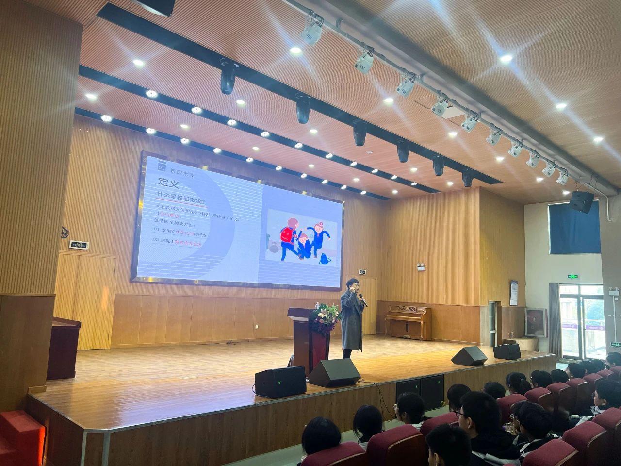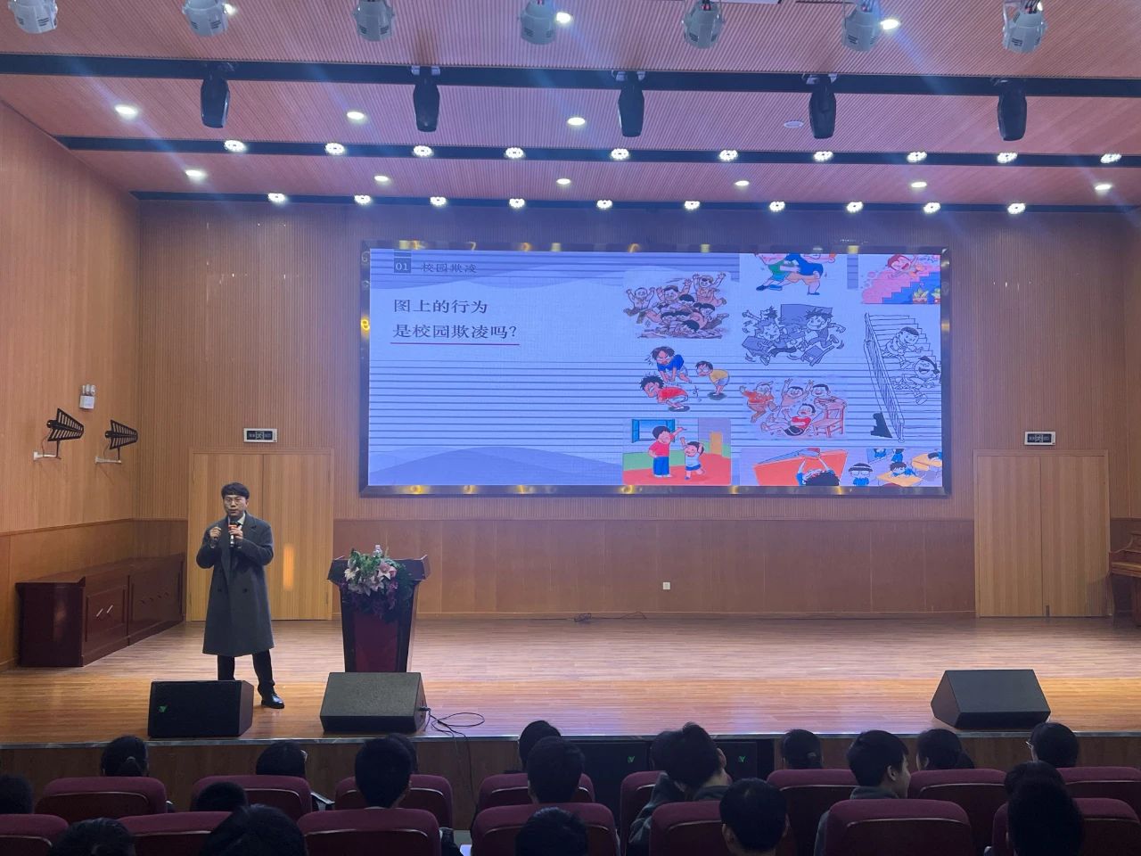在讲座中,王杨炼律师通过校园内真实发生的欺凌案例,从“什么是校园欺凌”“常见的欺凌行为有哪些”“遇到欺凌时学生、家长、老师各自该如何应对”等方面进行了详细讲解。从校园欺凌的构成四要件出发,立足主体、主观、客观行为、行为结果四方面,详细介绍肢体暴力、语言暴力、网络暴力、心理暴力等多种欺凌行为,结合社会热点事件,引出隐私权、名誉权等法律概念,并着重突出法律责任板块的内容。