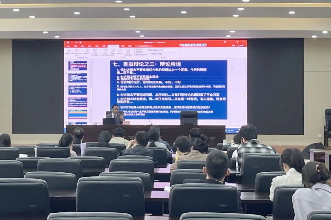 讲座中,叶湘律师提出“辩论”一词应分开理解为:辩,辩是辩非,辩天下公理;论,论古论今,论人间万象。从辩论的基础概念切入,叶湘律师提出辩论场上重要的是观点的表达。翻译思维讲究信达雅,其实辩论场上也是一样的。对此,叶湘律师着重从形象、辩论思维、如何破题、解题、辩论赛框架结构以及辩论分工等方面进行了分享。同时,叶湘律师提出,平常应通过研究真实案例,分析案情、法理和证据,以便在辩论中能够提供准确和有说服力的论据。