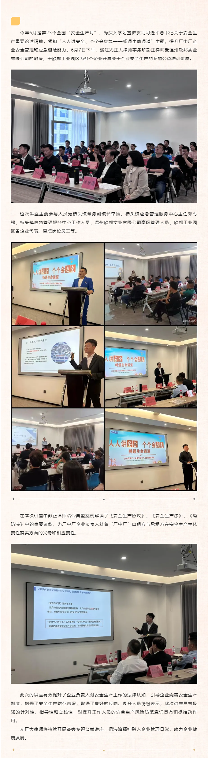 光正大所彭正律师受邀开展关于企业安全生产的专题公益培训讲座