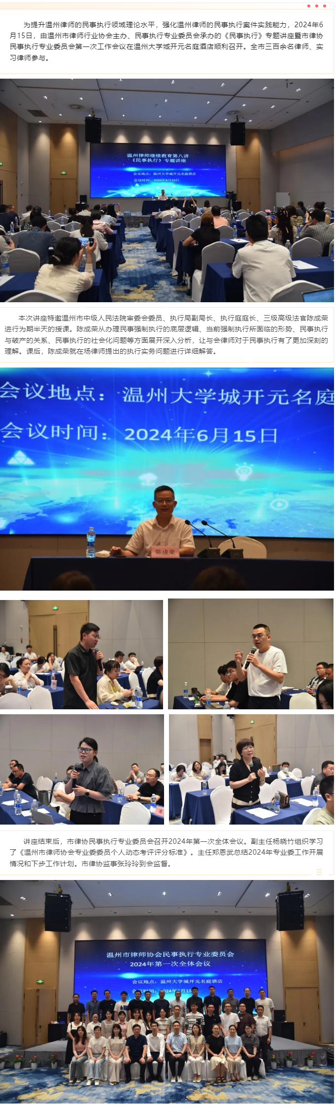 市律协成功举办2024年温州律师继续教育第八讲民事执行专题讲座暨市律协民事执行专业委员会第一次工作会议