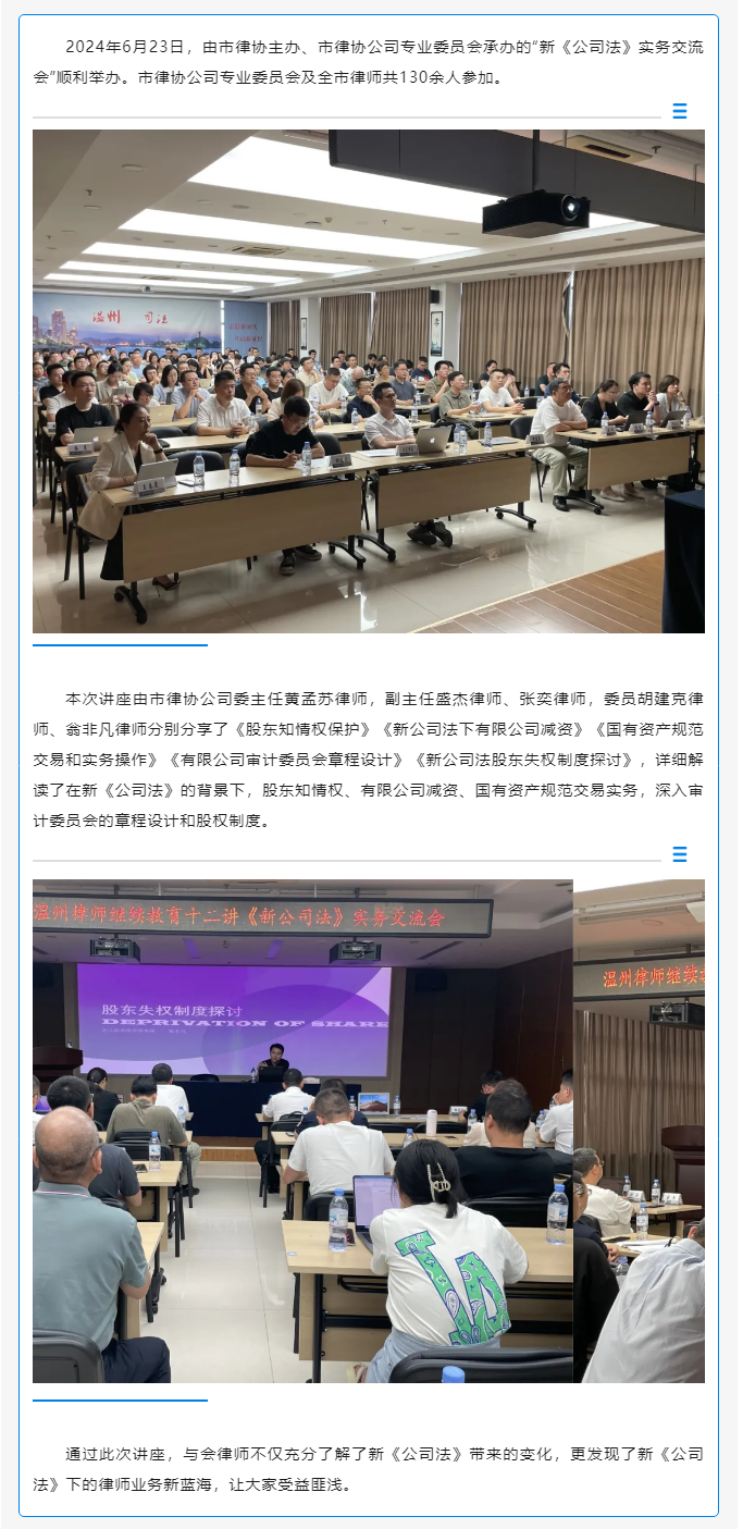 市律协成功举办2024年温州律师继续教育十二讲“新《公司法》实务交流会”